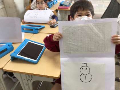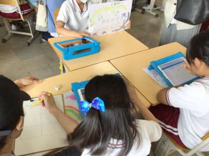 今日は、友達の説明を聞きながら、タブレットを使って絵を描きました。