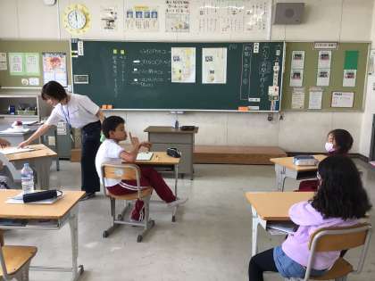 6月5日 国語 国際4年生 公開日 2023/06/05 更新日 2023/06/05 校長室から 今日は新聞づくりのために、校長にインタビューをする予定です。 少し早めに行くと、読めるようになった漢字を見せてくれました。 インタビューは「どうして校長先生なったのですか?」「東保見小学校の中で、好きな場所はどこですか?」と、こちらが答えるのに時間がかかる質問がありました。