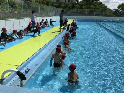 と聞こえてきました。事前に安全指導がされて、水から上がったときにバディ(2人組の相手)がいるか確認します。