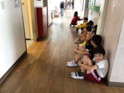 今日は高学年の歯科検診があります。 さすが高学年。廊下で静かに待つことができます。