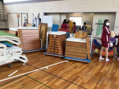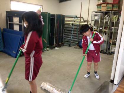 最後は体育委員会です。 体育館の倉庫から器具を出して、掃除をしてくれました。