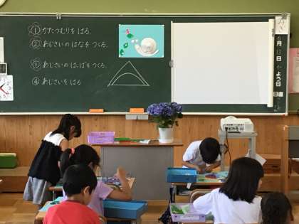 6月13日 図工 1年生 公開日 2023/06/13 更新日 2023/06/13 校長室から この梅雨の時期にぴったりの作品を作っていました。 カタツムリとアジサイです。子どもたちは、自分の思いのままのカタツムリを作っていました。