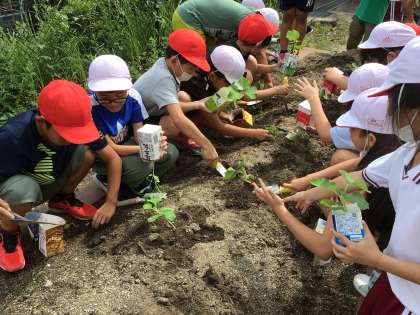 6月13日 理科 4年生 公開日 2023/06/13 更新日 2023/06/13 校長室から 楽しそうな声が聞こえてきました。 のぞいてみると、4年生が牛乳パックの中で大きくした植物の植替をしていました。 どんな実がなるのかな?