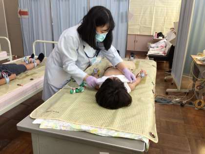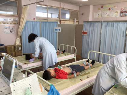 今日は心電図検査の日です。1年生と4年生が検査をします。
