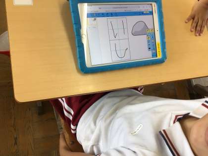 今日は金曜日。 学習用タブレットを持ち帰ります。 宿題のやり方を担任の先生から教わっていました。