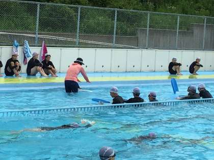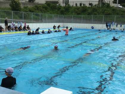 6年生はコースに分かれて、泳ぐ練習をしていました。