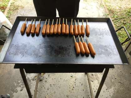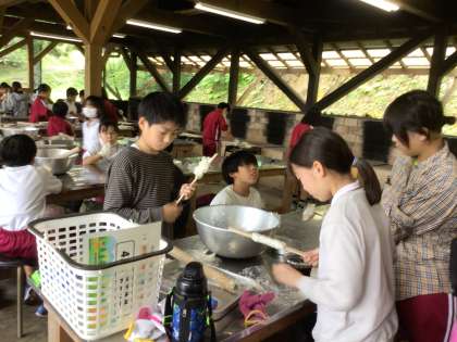 キャンプ2日目 おいしくいただきました 公開日 2023/06/29 更新日 2023/06/29 各学年から 五平餅を初めて食べるという子もいました。 美味しいともりもり食べていました。 先生がフランクフルトソーセージを焼いてくれました。