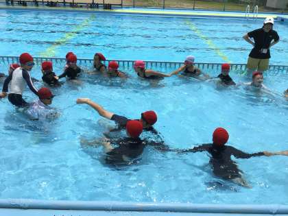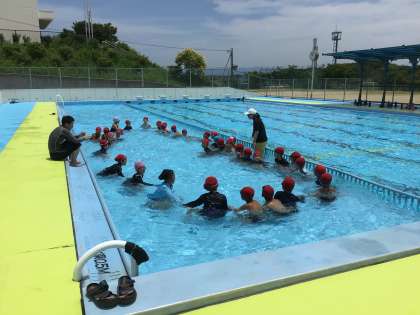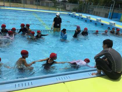朝から蒸し暑い今日は、水の中で過ごすのに最高の日です。 2年生がプールの中で、楽しく活動していました。