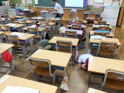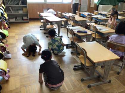 7月3日 国語 1年生 公開日 2023/07/03 更新日 2023/07/03 校長室から 地震がきたのではありません。避難訓練でもありません。 「どうやってみをまもるのかな」のアルマジロになってみました。 「体を丸めるってどうするのかな」と先生の一言で、みんなアルマジロになって体を丸めました。
