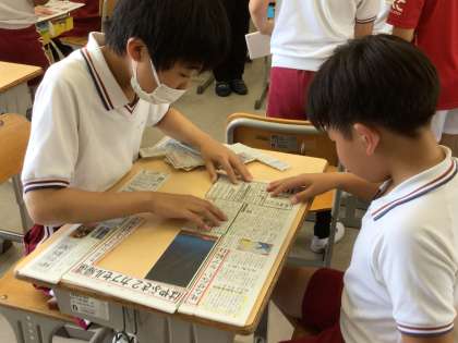 7月4日 中央図書館出前授業 5年生 公開日 2023/07/04 更新日 2023/07/04 校長室から 今日は5年生が中央図書館の出前授業を受けました。 新聞記事の構成を知るために、新聞パズルに取り組みました。