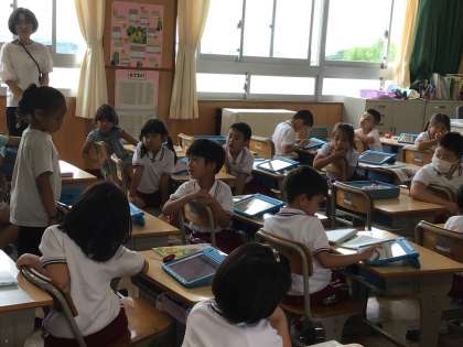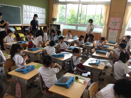 たんたん たんうん と考えたリズムを学習用タブレット上に記録し、発表しました。