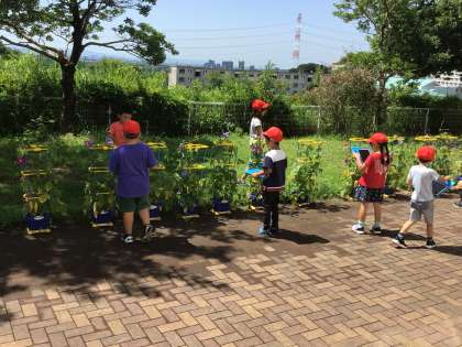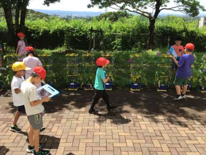 アサガオの観察をしました。 学習用タブレットで写真を撮ります。