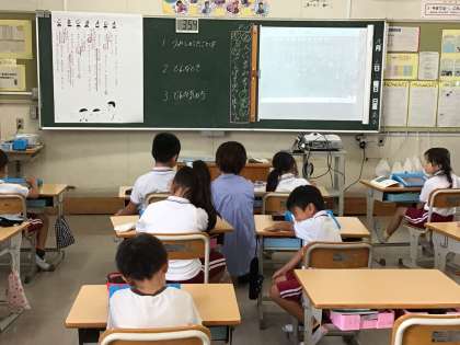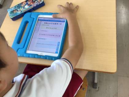 学習用タブレットを使って、「言われてうれしかったことば」を書き込んでいました。