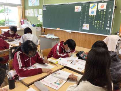 6年生は「カスミと携帯電話」の教材文を取り上げて、みんなで考えました。