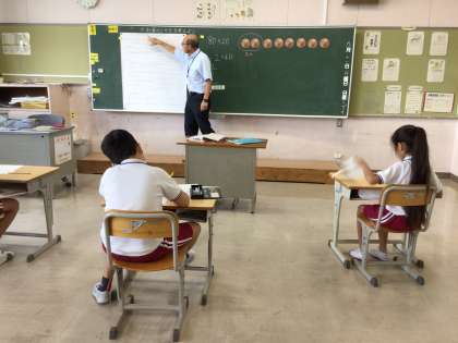 9月11日 算数 国際4年生 公開日 2023/09/11 更新日 2023/09/11 校長室から 国際クラスも同じ「2けたでわる割り算の筆算」の学習でした。 筆算の商を書く場所を忘れてしまい、「ん?そこ?」「ちがう?」という場面がありました。 説明を聞いて思い出しました。