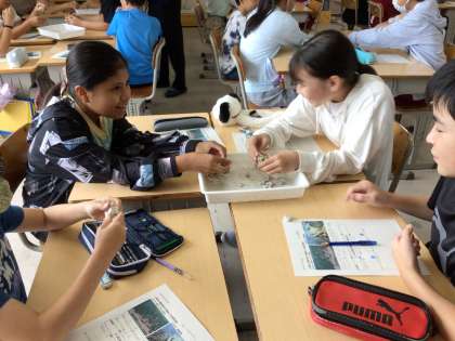 風化した花崗岩を触ると、もろくてすぐに砕けてしまいました。実物を見せてもらうことができ、どの子も集中して話を聞くことができました。