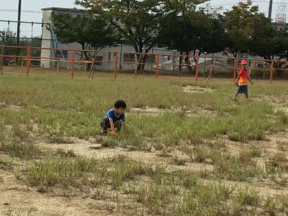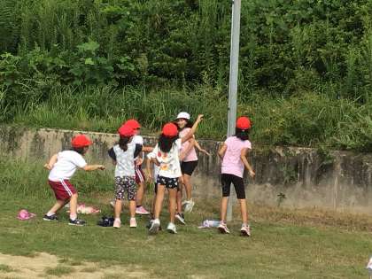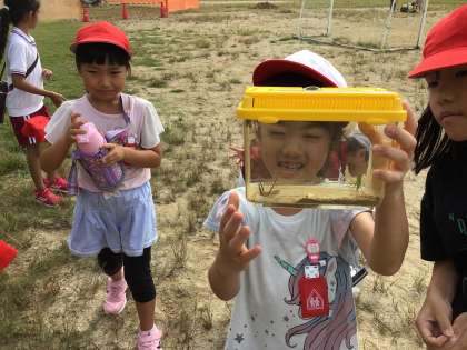 9月20日 生活科 1年生 公開日 2023/09/20 更新日 2023/09/20 校長室から 1年生が虫とりに運動場へ行くというので、一緒に外に出ました。 何やらダンスが始まりました。「虫とりダンス?」準備運動だそうです。 バッタやテントウムシ、クモなどが見つかりました。 今から教室へ戻り、観察します。