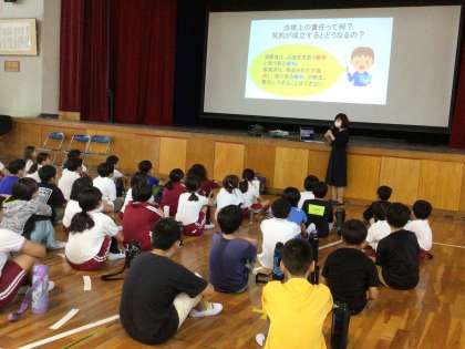 消費者センターから講師の方に来ていただき、「ものやお金の使い方」の学習を深めるために授業をしていただきました。「売買契約」をわかりやすく教えてもらいました。賢い消費者になることが大切です。