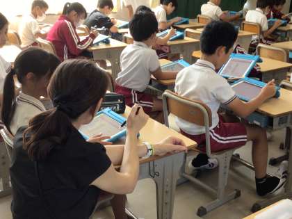 4年生はスクラッチを使って、正方形や正三角形の作図に挑戦しました。