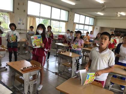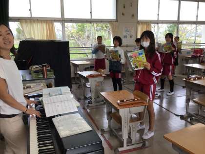 10月4日 音楽 4年生 公開日 2023/10/04 更新日 2023/10/04 校長室から 音楽室に入っていくと、大歓迎の声。何事かと思っていると、 「校長先生に聞いてもらいたかった!」 と、リコーダーをいったん片付けて、歌のプレゼントがありました。普段から元気一杯の4年生が、さらに元気いっぱいで歌ってくれたので、本当に元気になりました。 「音楽っていいなあ」心の底から思いました。