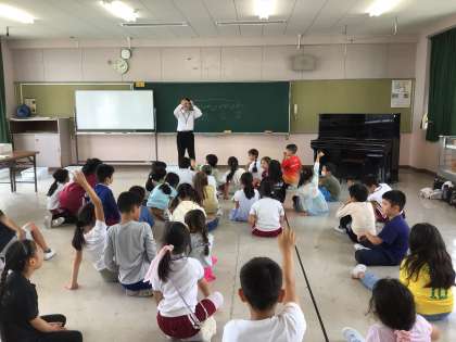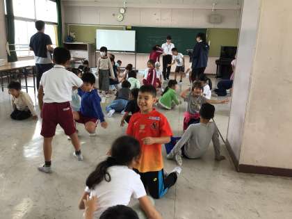 10月4日 教育実習生の先生と 2年生 公開日 2023/10/04 更新日 2023/10/04 校長室から 4階のチャレンジルームでは、2年生の元気な声。 入っていくと、教育実習生の先生と楽しいゲームの最中でした。