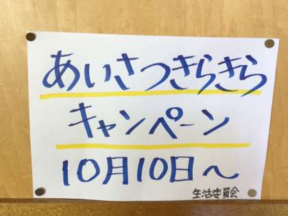 生活委員会が中心となり、「あいさつキラキラキャンペーン」を行なっています。