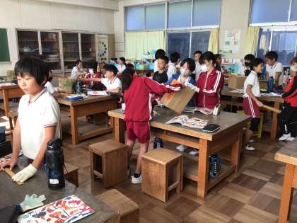 段ボールを使って作品を作ります。 何ができるのか、楽しみです。