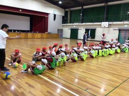 ビブスを着て、何やらドッジボールが始まるようです。