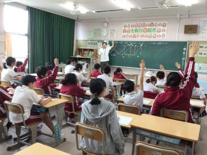 10月16日 算数 5年生 公開日 2023/10/16 更新日 2023/10/16 校長室から 今日の課題は「公式を使っていろいろな図形の面積を求めよう」です。 はじめに平行四辺形の面積を求めました。
