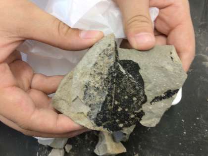 10月18日 出前授業 6年生 公開日 2023/10/18 更新日 2023/10/18 校長室から 博物館準備課から講師の先生に来ていただき、理科の授業をしてもらいました。 今日は「化石」の学習です。実際に石を割って、化石を見つけることができました。 貝や植物(葉っぱなど)が出てくると大興奮!保見地区で採掘してきた石だということで、昔のこの辺りがどんな様子の土地だったのかわかりました。