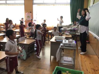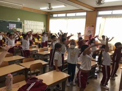 10月19日 ダンス 1年生 公開日 2023/10/19 更新日 2023/10/19 校長室から 1年生の教室に入っていくと 「校長先生に見てもらおう!」 とダンスが始まりました。ダンスもよかったけれど、笑顔がもっとすてきでした。 運動会が楽しみです。
