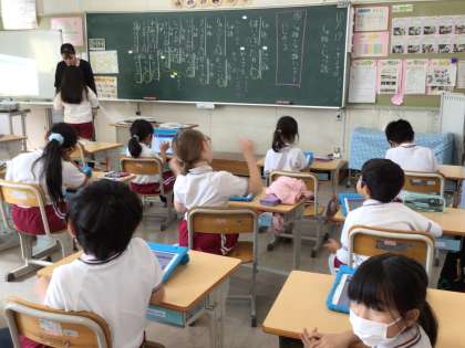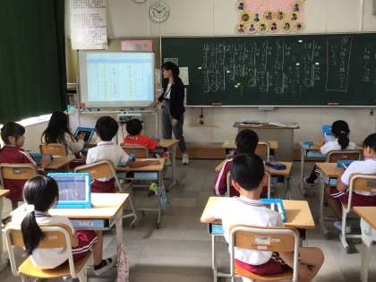 黒板に残っていた文が、授業の楽しさを物語っていました。