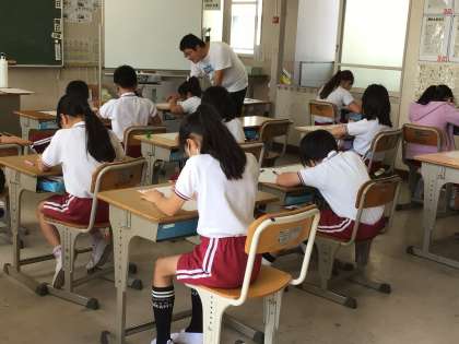 隣のクラスは静かにテストをしていました。 じゃましてごめんね。