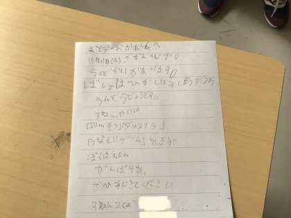 運動会の招待状を書きました。 おうちの人に向けて書いていました。