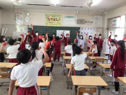 11月1日 応援練習 3年生 公開日 2023/11/01 更新日 2023/11/01 校長室から 3年生はもうすっかり覚えてしまったようです。 振り付けが上手になってきました。 6年生のお兄さん、お姉さんたちが本当にがんばっています。