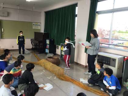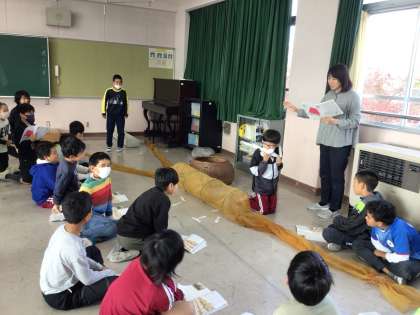 ごんぎつねに出てくる道具を資料館から借りてきました。 ごんと兵十とのやりとりを動作化してみました。
