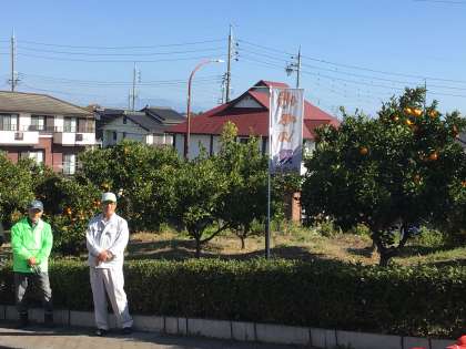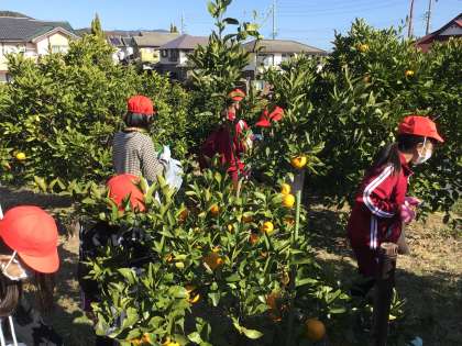 乙部ヶ丘わくわく事業推進委員の方といっしょに、東門外のみかん畑で収穫祭を行いました。