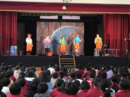 朝早くから、劇団影法師の皆さんが来てくださり「もったいないミュージカル」を上演してくれました。歌ありダンスあり、本当に楽しい時間が過ごせました。