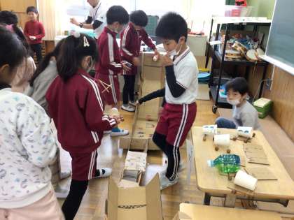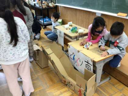 11月28日 生活科 1.2年生 公開日 2023/11/28 更新日 2023/11/28 校長室から 1年生が2年生を招待して、どんぐりを使ったおもちゃでいっしょに活動しました。 いつも、招待してもらう1年生ですが、今日は自分たちがおもてなしをしないといけません。 2年生に楽しんでもらえたかな?
