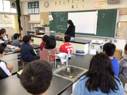 11月28日 理科 4年生 公開日 2023/11/28 更新日 2023/11/28 校長室から 「ものの温度と体積」 理科室に入ると、何やら神妙な雰囲気。 実験の前に、危険がないように先生から注意がありました。 真剣に話を聞くことができました。