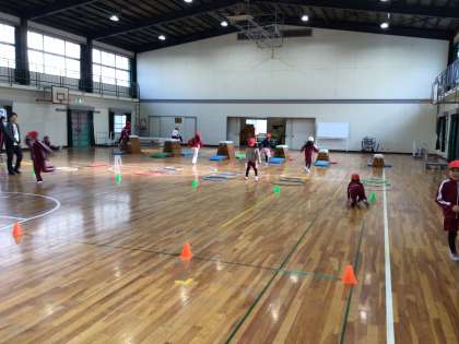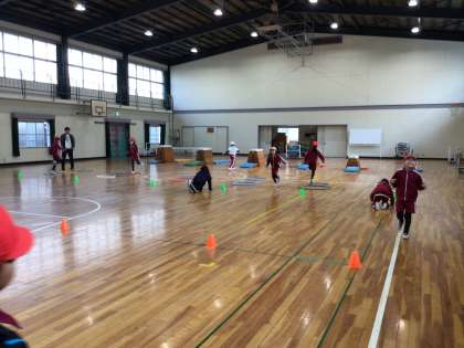 12月7日 体育 2年生 公開日 2023/12/07 更新日 2023/12/07 校長室から 1時間目から2年生が元気よく体育の授業をしていました。 1 スタートしてミニコーンのところから 四つん這い歩き 2 フラフープをけんけん 3 助走をつけて跳び箱 何度も順番が回ってくるので、かなりの運動量になりました。