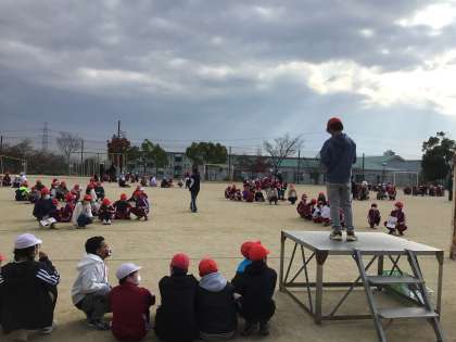 12月7日 たてわり遊び 公開日 2023/12/07 更新日 2023/12/07 校長室から 今日は、全校で運動場に出て、長縄跳びをしました。 はじめに6年生が見本を見せてくれました。 次に、各グループごとに練習しました。 最後に、あいさつをして終わりました。 雨が降ってきそうな空でしたが、みんなが元気よく跳んでいたので、太陽が顔を出してくれました。