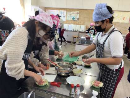 役割を決めて手際よく調理していました。