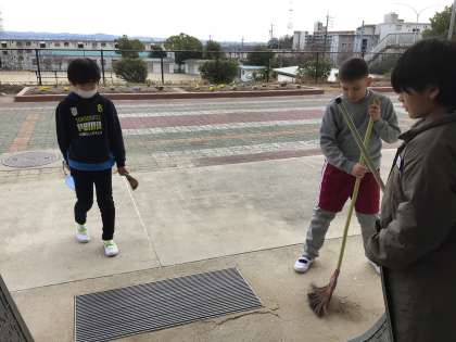 昇降口の入り口に溜まった砂を掃き集めてきれいにしてくれました。