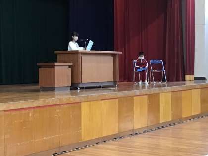 次に、1年生と6年生の代表児童が意見発表をしました。