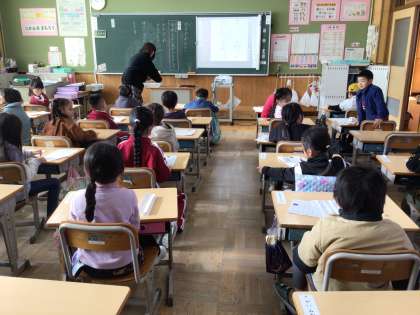 1年生は、机の上に必要なものを準備していました。