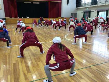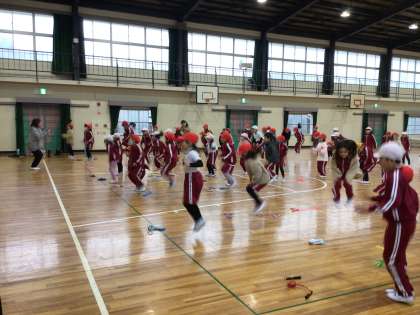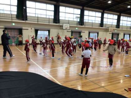 1月18日 なわとび教室 1・2年生 公開日 2024/01/18 更新日 2024/01/18 校長室から 中京大学の先生が来てくださり、2時間目は1年生と2年生になわとびを教えてくださいました。 「今日の目標は二重跳びができるようになること」です。 準備運動をしっかり行なった後で、1回のジャンプで腿を2回たたくをやってみました。 みんな、気持ちはできていました!