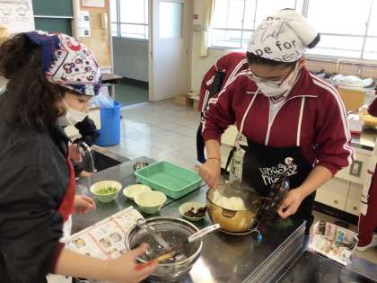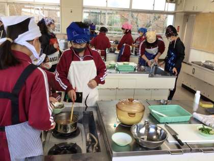 1月19日 家庭科 5年生 公開日 2024/01/19 更新日 2024/01/19 校長室から 調理実習でご飯を炊いて、お味噌汁を作っています。 「上手に炊けた!」 とうれしそうに見せてくれました。 家庭では鍋でお米を炊くことがないですよね。 調理実習ではお米の様子を確認するため、色付き透明の鍋を使います。 味噌汁は煮干しで出汁をとって作りました。