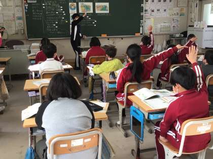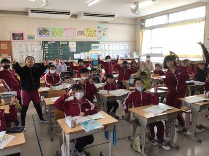 授業の最後に「しっかり考えていて立派です」と褒めたら、みんなで写真を撮ることになりました。
