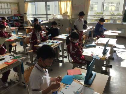 1月30日 図工 2年生 公開日 2024/01/30 更新日 2024/01/30 校長室から 紙版画に挑戦! 学習用タブレットに描いた下絵をもとに、色インクのついた紙を貼って台紙を作っていきます。 子どもたちには感心しました。 タブレットに描いた絵を上手に台紙に再現することができるなんて・・・。